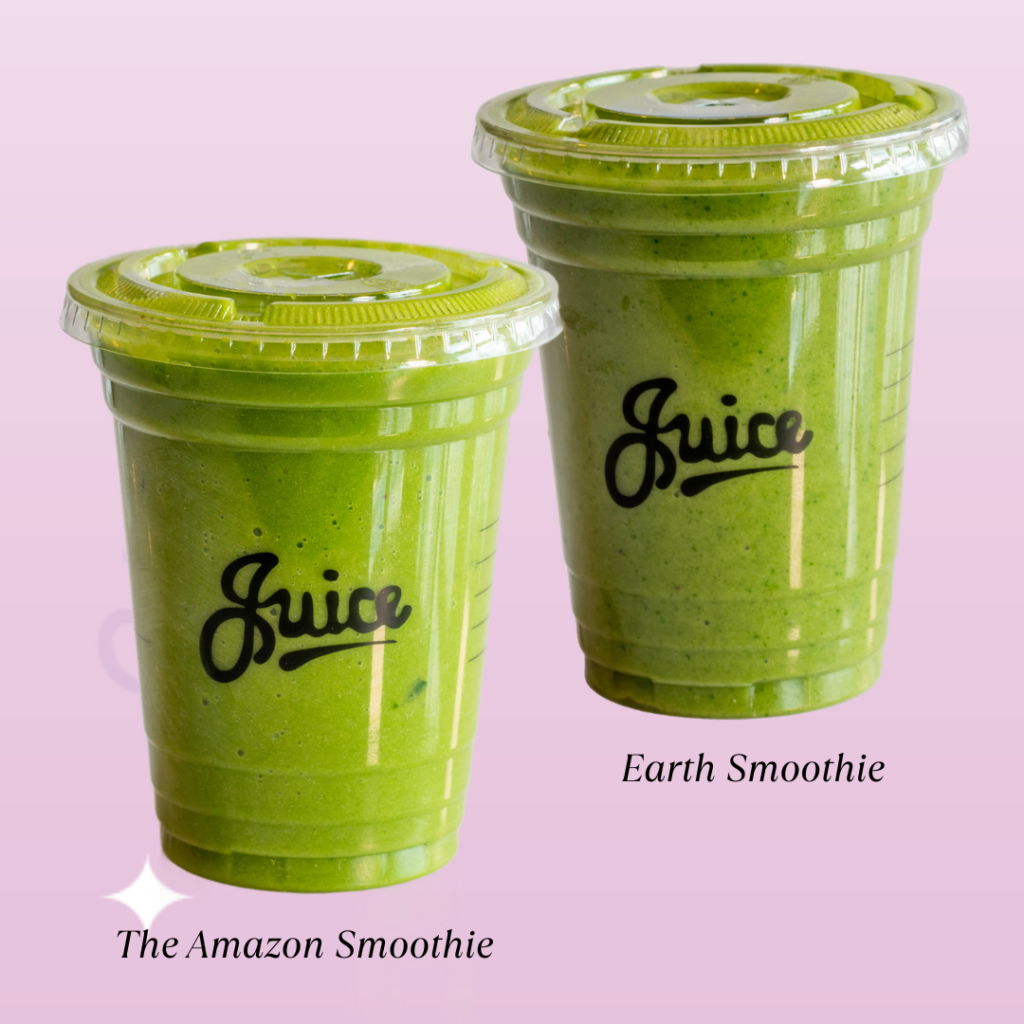 Earth Smoothie: If you want sustained energy without a sugar spike, this is your go-to. Apple juice and banana provide clean carbs, while avocado adds healthy fats for longer-lasting fuel. Supergreens and leafy greens boost oxygen delivery and nutrient absorption. Best for strength training, yoga, and longer workouts. Balanced energy + micronutrient support.
